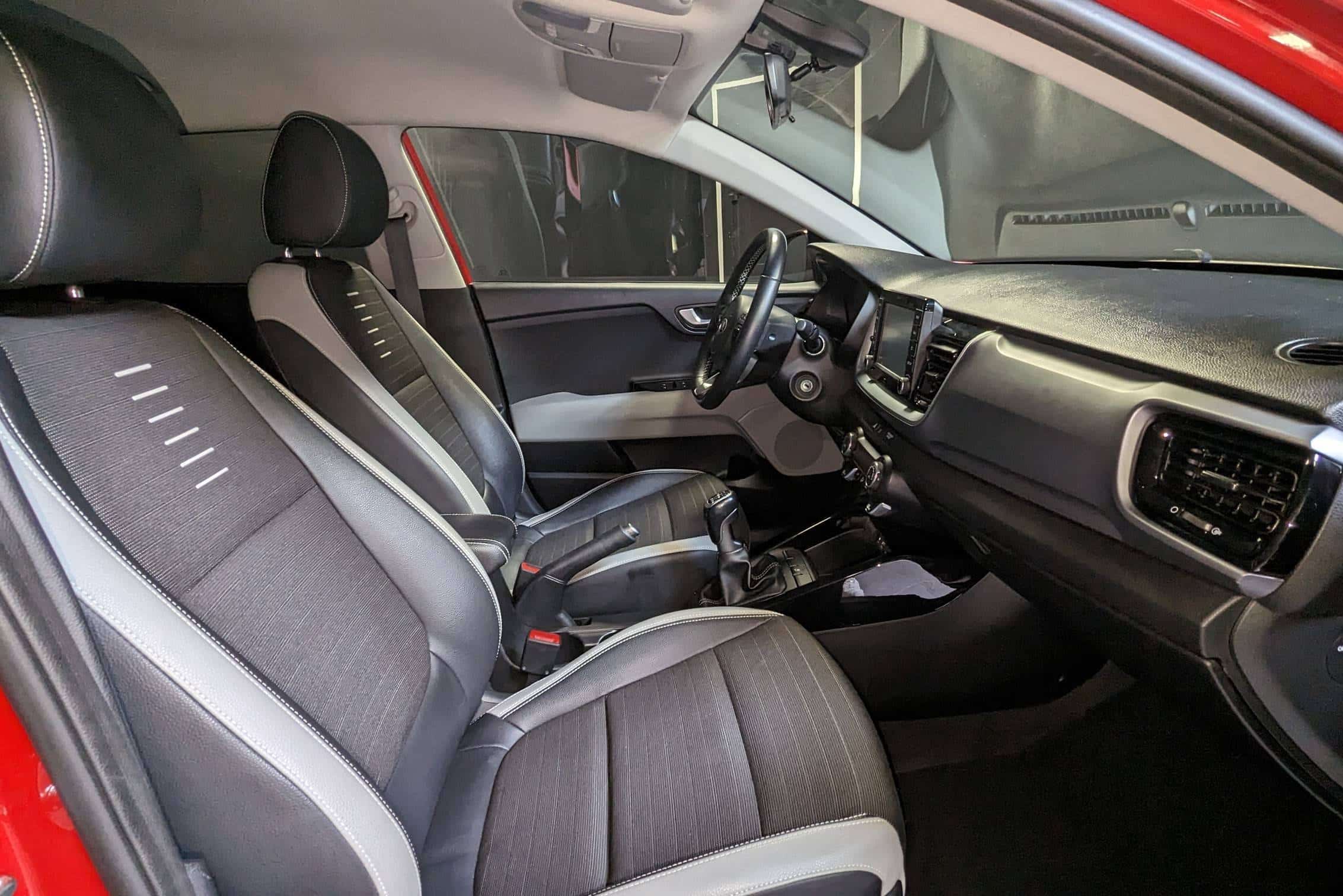 • Sellerie cuir de synthèse noir/tissu gris